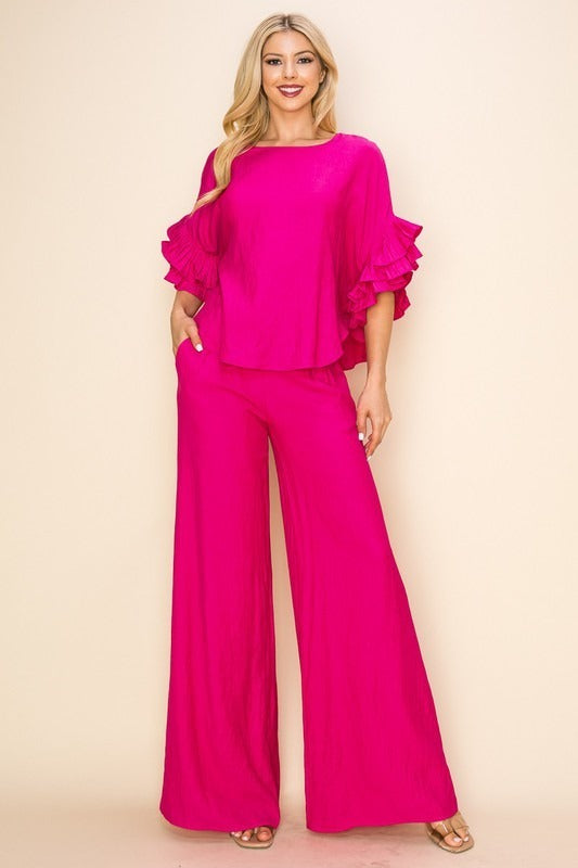 Conjunto de blusa casual,con pantalón palazo largo,ideal para la mujer actualizada que viste a la moda